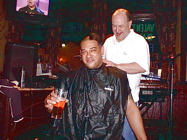 Over £500 was raised for the Great Ormond Street Hospital by Dave who stupidly volunteered to have his Elvis Hairdo Shaved in the Malt and Hops pub in North Finchley.